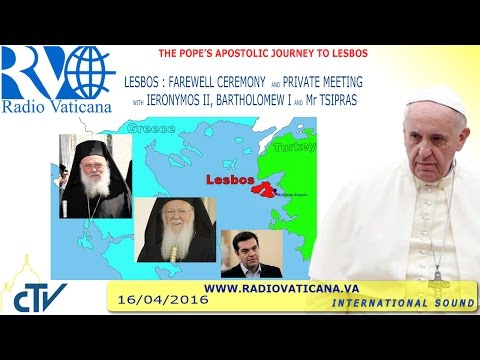 Pope Francis' Visit to Refugees in Lesbos with Patriarch Bartholomew and Archbishop Ieronymos. Departure Ceremony 2016.04.16